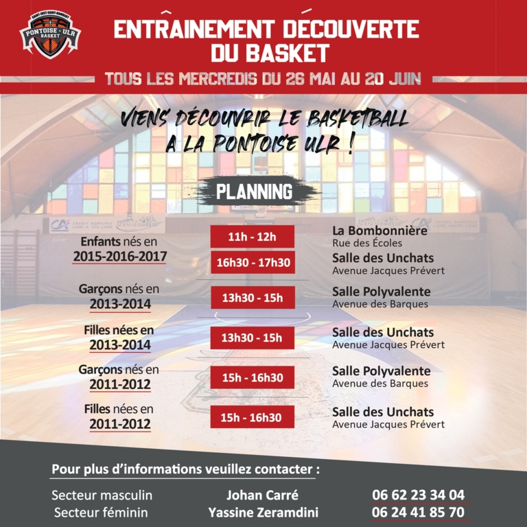 Entraînement découverte du basket tous les mercredis du 26 mai au 20 juin pour les enfants nés entre 2011 et 2017 ! 🏀